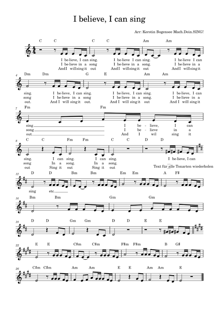 Beachte: Du solltest versuchen, in der Bruststimme zu bleiben.